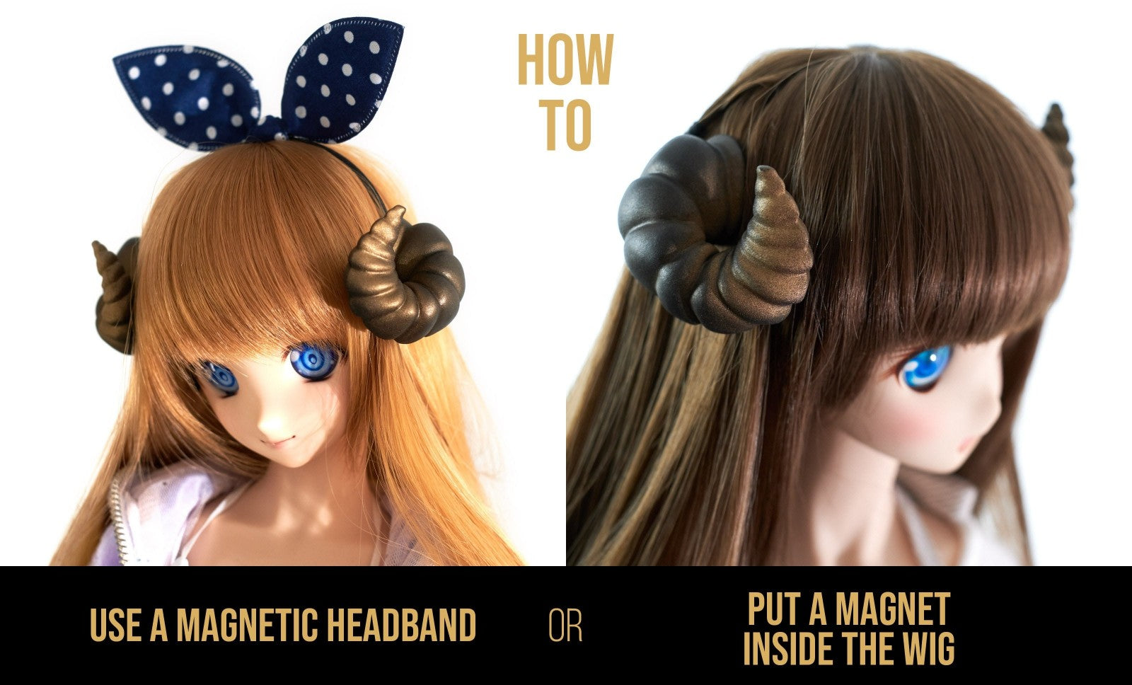 How to: The Demon Horn already contains magnets. You just put the extra magnet inside the wig. Magnetic will fix the Demon Horn outside. OR use a magnetic headband. That is an easy way to set the Demon Horn.